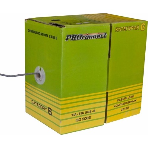 PROCONNECT Кабель витая пара омедненный U/UTP, CCA, CAT 6, PVC, 4PR, 23AWG, INDOOR, SOLID, серый, 305м