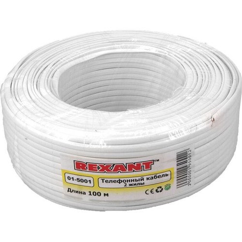 REXANT Кабель телефонный ШТЛП 2 жилы Cu, белый, 100м