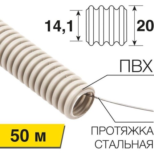 REXANT Труба гофрированная из ПВХ, с зондом, Ø20мм (бухта 50 м/уп)