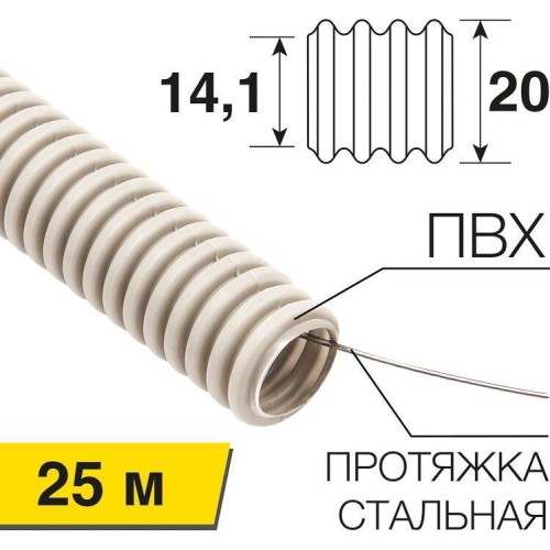 REXANT Труба гофрированная из ПВХ, с зондом, Ø20мм (бухта 25 м/уп)