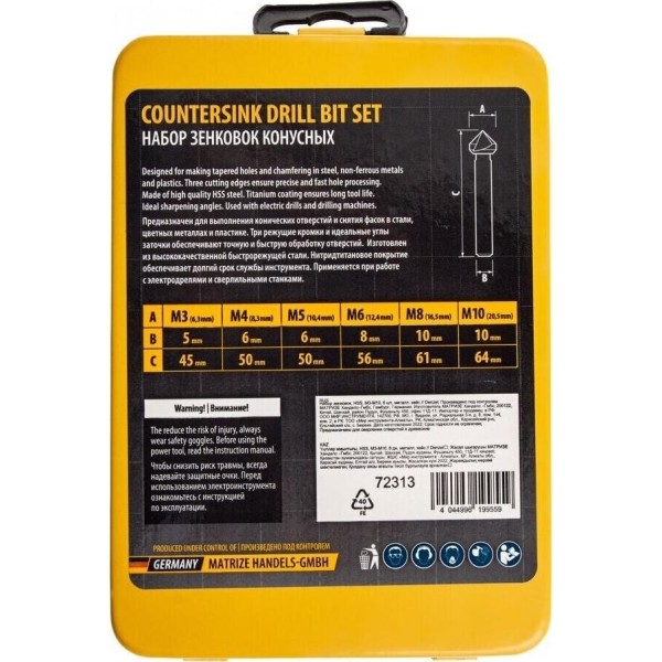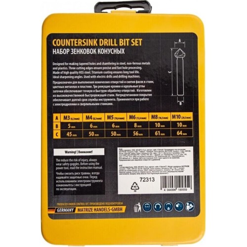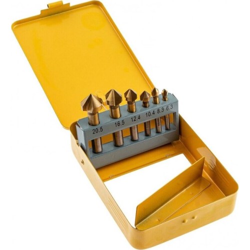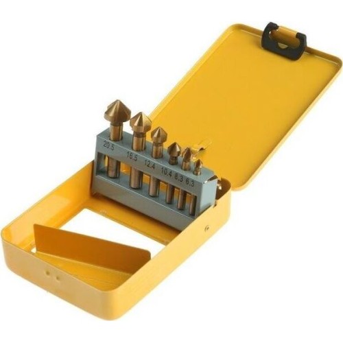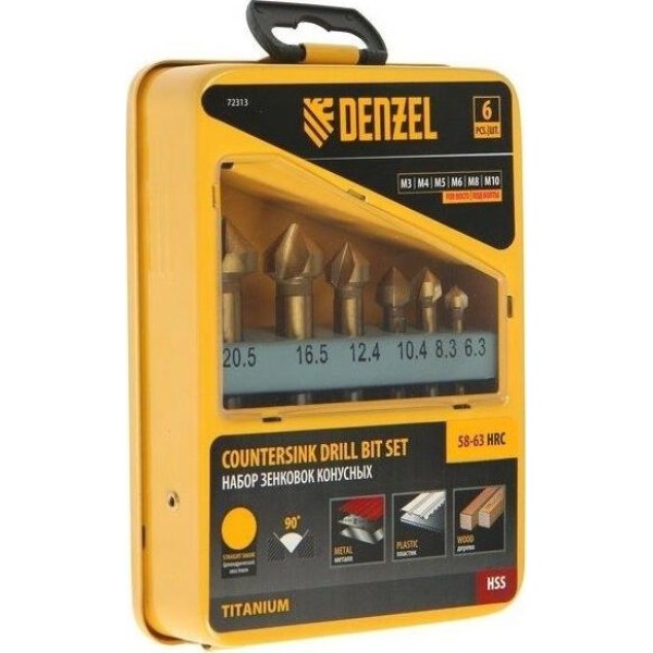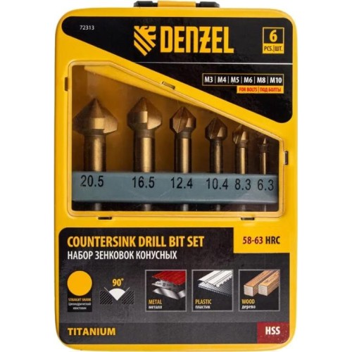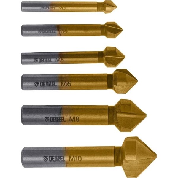 Набор зенковок DENZEL Набор зенковок, HSS, M3-M10, 6 шт, металл. кейс 72313