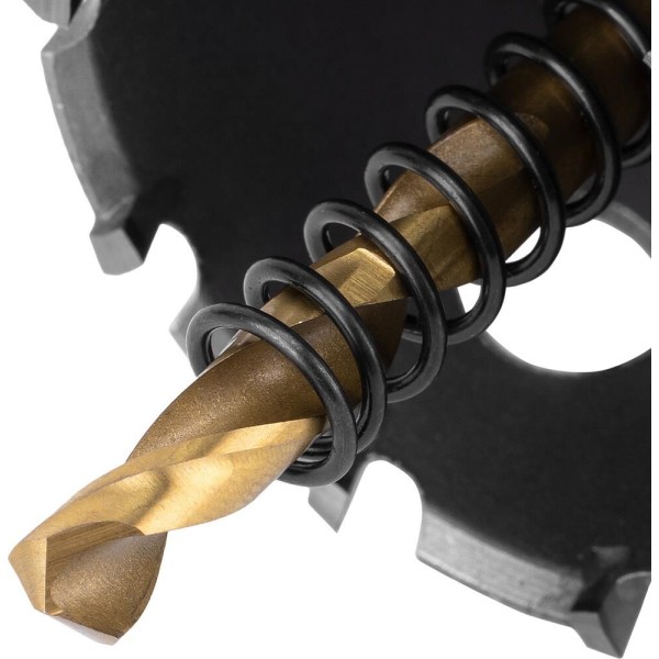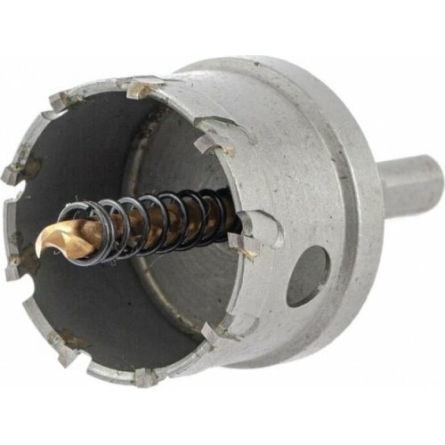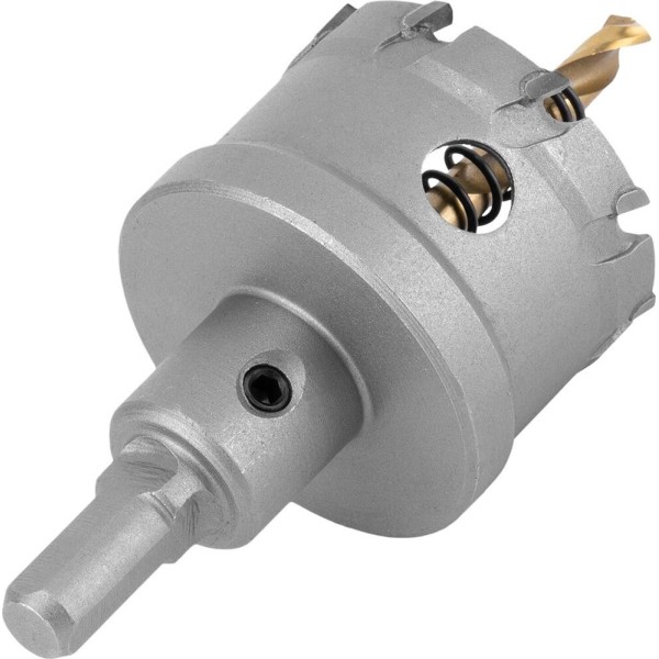 Твердосплавная коронка Denzel 724015 диаметром 47 мм используется для сверлильных работ по черным, цветным металлам, пластику и другим материалам. Позволяет получить отверстия большего диаметра в сравнении с обычным сверлом. Твердосплавные зубья легко выдерживают интенсивные нагрузки, поэтому коронка подходит не только для бытового, но и для профессионального применения. Преимущества Прочность — твердосплавные режущие пластины выполнены из сплава карбид-вольфрама, а корпус — из углеродистой стали. Эффективность — режущие пластины твердостью 91-92 HRC и центрирующее сверло из быстрорежущей легированной стали обеспечивают высокую скорость и качество засверливания. Высокая производительность — специальная пружина не допускает застревания шлама. Крепкая фиксация — трехгранный хвостовик не прокручивается в патроне. Надежность — коронка изготовлена на современном оборудовании методом электросварки.