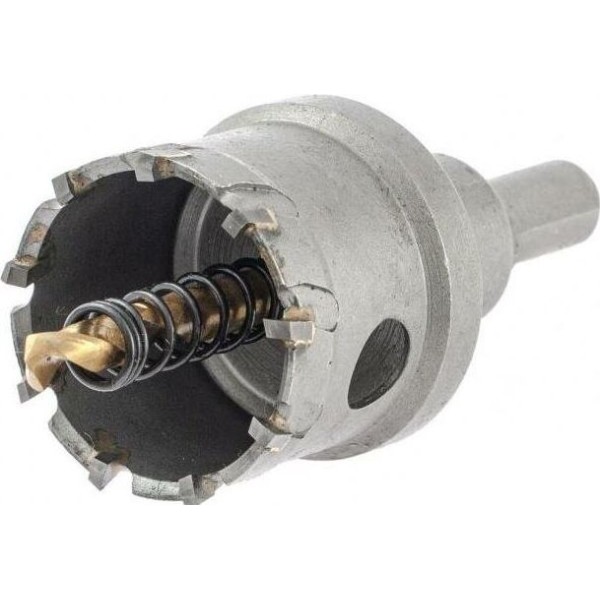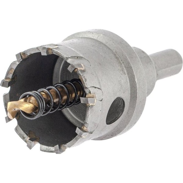 Твердосплавная коронка Denzel 724012 диаметром 38 мм используется для сверлильных работ по черным, цветным металлам, пластику и другим материалам. Позволяет получить отверстия большего диаметра в сравнении с обычным сверлом. Твердосплавные зубья легко выдерживают интенсивные нагрузки, поэтому коронка подходит не только для бытового, но и для профессионального применения.ПреимуществаПрочность — твердосплавные режущие пластины выполнены из сплава карбид-вольфрама, а корпус — из углеродистой стали.Эффективность — режущие пластины твердостью 91-92 HRC и центрирующее сверло из быстрорежущей легированной стали обеспечивают высокую скорость и качество засверливания.Высокая производительность — специальная пружина не допускает застревания шлама.Крепкая фиксация — трехгранный хвостовик не прокручивается в патроне.Надежность — коронка изготовлена на современном оборудовании методом электросварки.