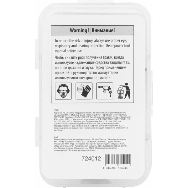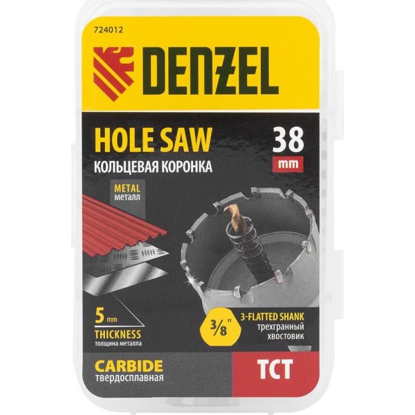 DENZEL Коронка по металлу твердосплавная, 38 мм 724012