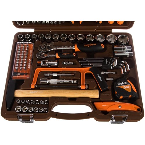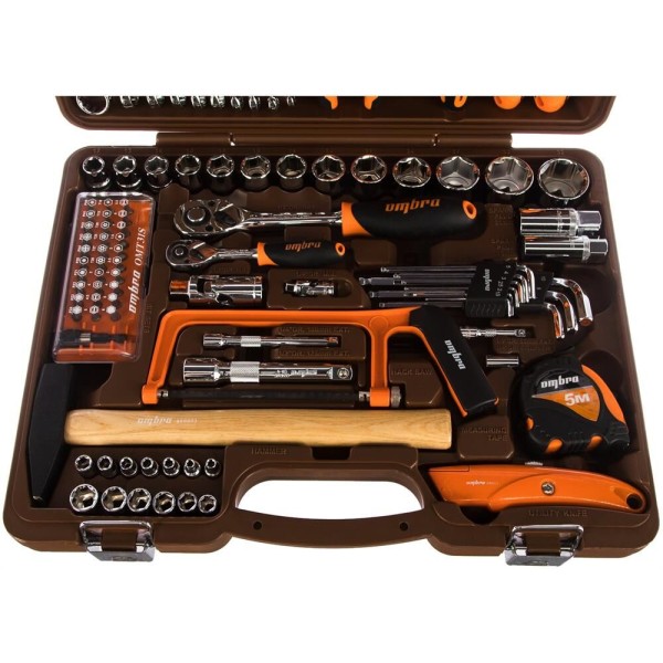 Набор головок OMBRA OMT101S торц. гол. 1/4", 1/2"DR 4-32 мм, аксессуары к ним,комбин ключи 8-19 мм, отвертки