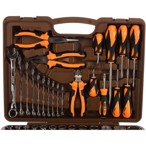 OMT101S Универсальный набор инструмента торцевые головки 1/4", 1/2"DR 4-32 мм, аксессуары к ним комбинированные ключи 8-19 мм, отвертки, 101 предмет; ;