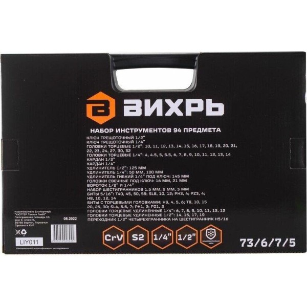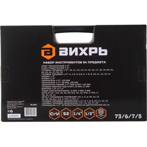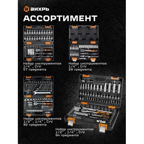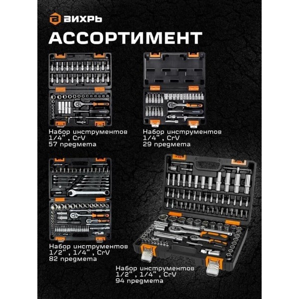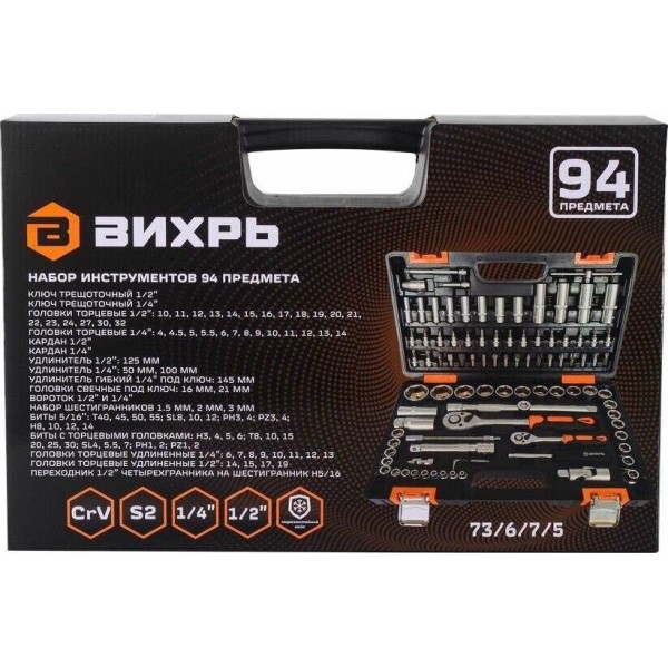 ВИХРЬ Набор инструментов Авто 94 предмета (жесткий кейс)