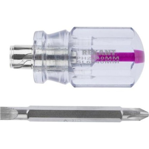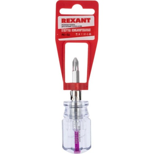 Отвёртка комбинированная, прозрачная рукоятка, двухсторонний стержень 40 мм ( PH2 , SL 6 мм) Rexant