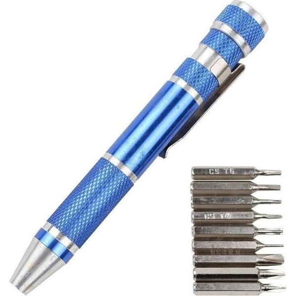 биты 9 шт- PH0, PH00, Y2.0, Pentalobe 0,8, Pentalobe 2, T4, T5, T6, SL2; материал: ручка - алюминий, биты -хром-ванадиевая сталь Упаковка: двойной блистер