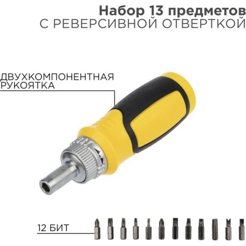 Отвертка REXANT (12-4778) Набор 13 предметов с реверсивной отверткой