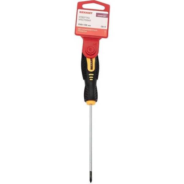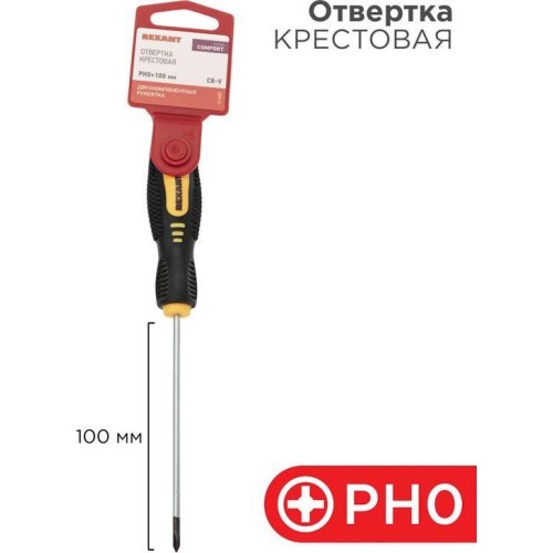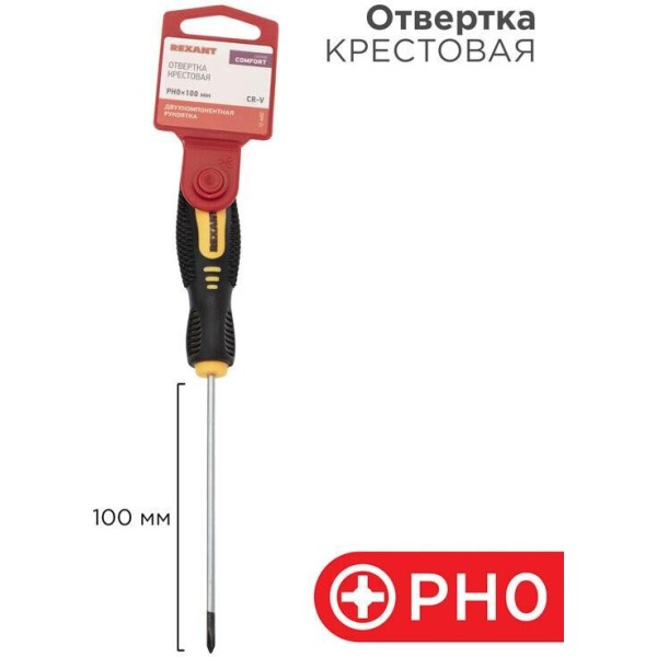 Отвертка REXANT (12-6402) Отвертка крестовая PH0х100мм, двухкомпонентная рукоятка