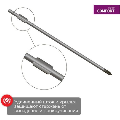 Отвертка крестовая REXANT предназначена для проведения монтажа и демонтажа резьбовых соединений: шурупов, саморезов и т. д. Стержень инструмента, устойчивый к коррозии, выполнен из качественной хромованадиевой стали и оснащен оксидированным намагниченным наконечником. Отвертка обладает эргономичной двухкомпонентной рукояткой, которая предотвращает скольжение в ладони и обеспечивает более комфортную работу. В основании изделия предусмотрено отверстие для его подвеса.
