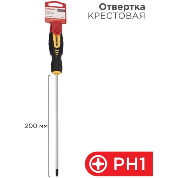 Отвертка REXANT (12-6406) Отвертка крестовая PH1х200мм, двухкомпонентная рукоятка