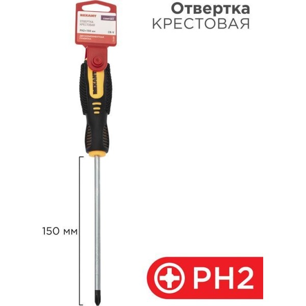Отвертка REXANT (12-6408) Отвертка крестовая PH2х150мм, двухкомпонентная рукоятка