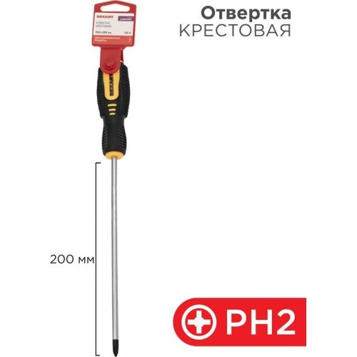 Отвертка REXANT (12-6409) Отвертка крестовая PH2х200мм, двухкомпонентная рукоятка