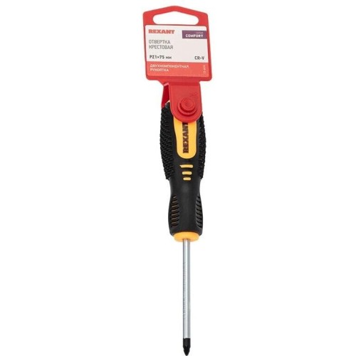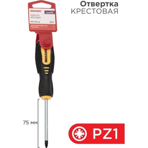 Отвертка REXANT (12-6414) Отвертка крестовая PZ1х75мм, двухкомпонентная рукоятка