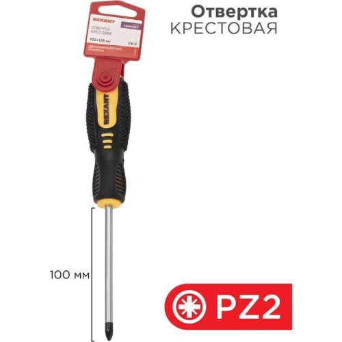 Отвертка REXANT (12-6415) Отвертка крестовая PZ2х100мм, двухкомпонентная рукоятка