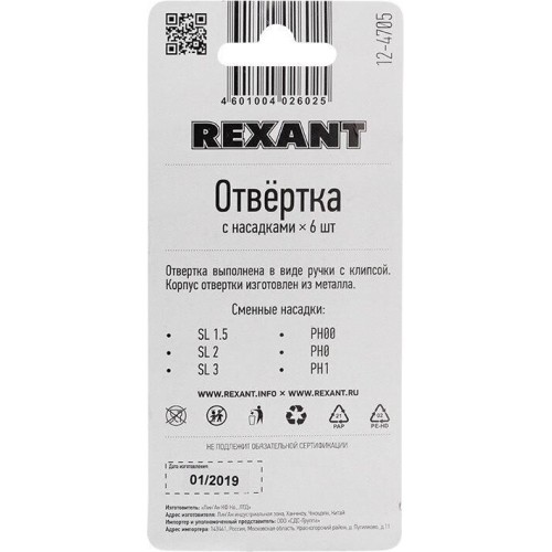 Отвертка REXANT (12-4705) Отвертка с насадками 6 шт.