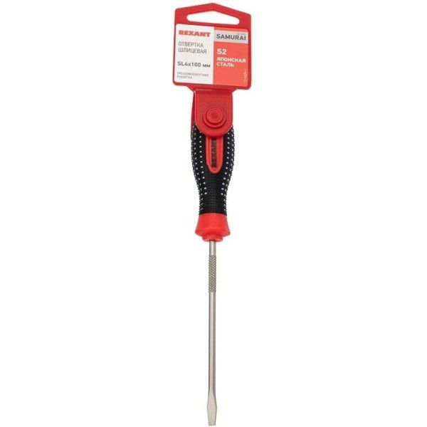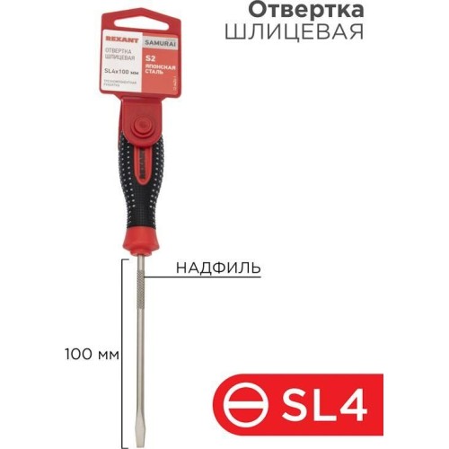 Отвертка REXANT (12-6424-1) Отвертка шлицевая SL4х100мм, трехкомпонентная рукоятка, сталь S2