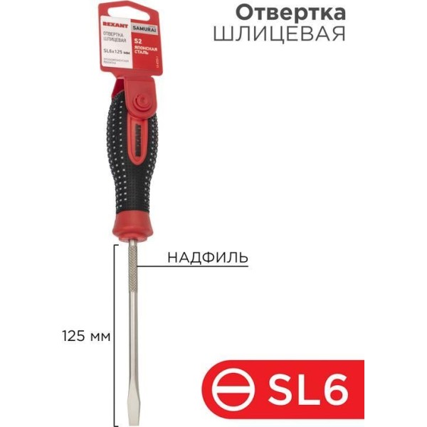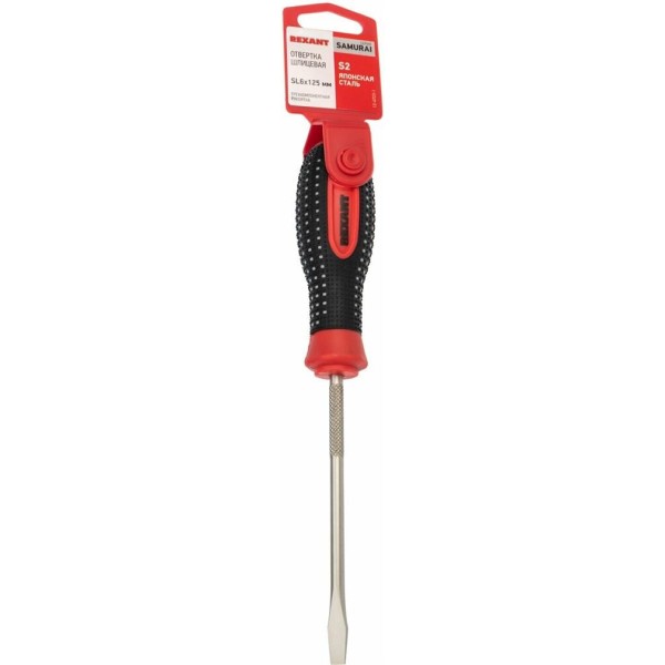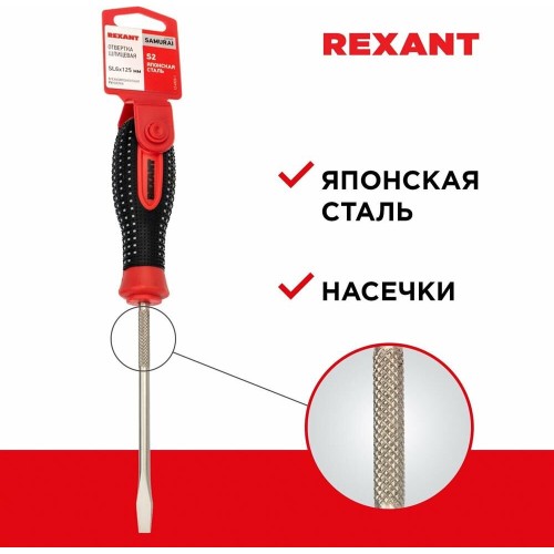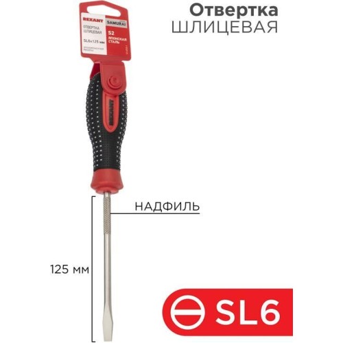 Отвертка REXANT (12-4723-1) Отвертка шлицевая SL6х125мм, трехкомпонентная рукоятка, сталь S2