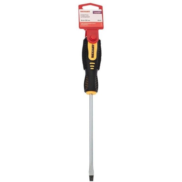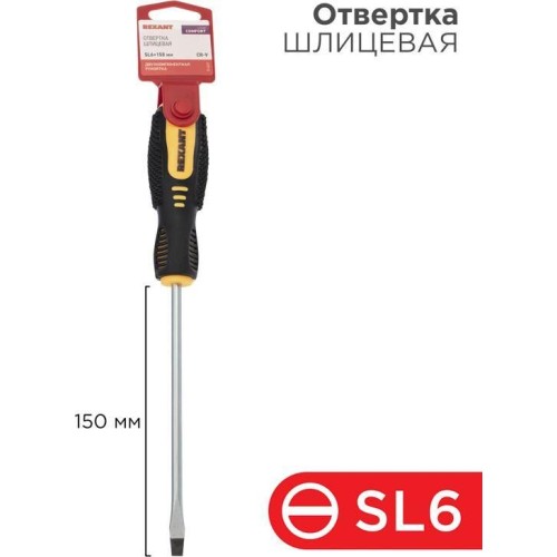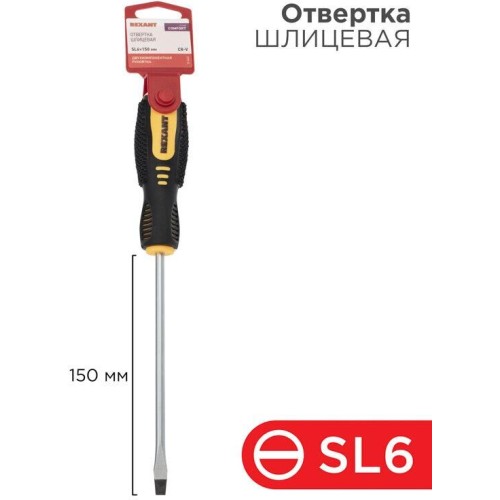 Отвертка REXANT (12-6431) Отвертка шлицевая SL6х150мм, двухкомпонентная рукоятка