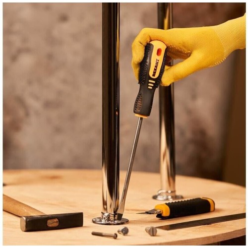 Отвертка шлицевая REXANT используется для монтажа и демонтажа резьбовых соединений (шурупов, саморезов), имеющих на головке прямой паз. Оснащена эргономичной двухкомпонентной рукояткой, которая предотвращает скольжение в ладони и обеспечивает более комфортную работу. Инструмент обладает стержнем, который изготовлен из высококачественной хромованадиевой стали, обладающей высокой стойкостью к коррозии. Благодаря оксидированному намагниченному наконечнику крепежная деталь не упадет при извлечении или установке. В основании инструмента предусмотрено отверстие для его подвеса.