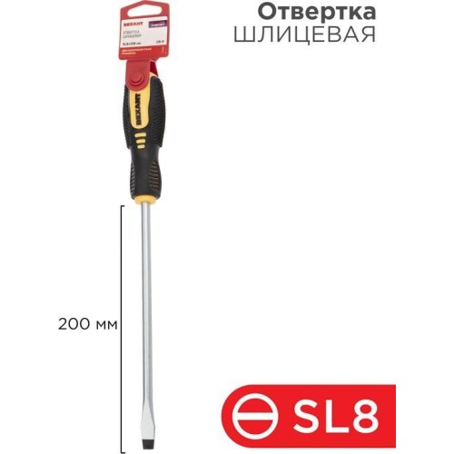 Отвертка REXANT (12-6433) Отвертка шлицевая SL8х200мм, двухкомпонентная рукоятка