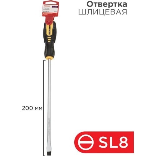 Отвертка REXANT (12-6434) Отвертка шлицевая SL8х250мм, двухкомпонентная рукоятка