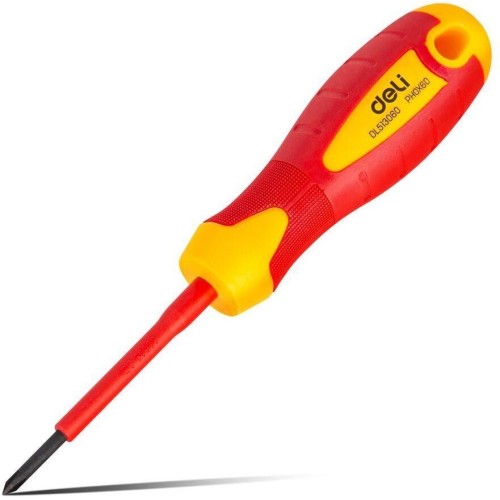 Отвертки Deli Диэлектрическая крестовая отвертка Deli DL513060 PH0х60мм сталь Cr-V, сертификат VDE для работ под напряжением до 1000 В