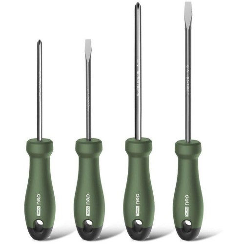 Отвертка Deli Набор отверток "Home Series Green" Deli HT1004L 4шт SL5x100+SL6x150+PH1x100+PH2x150, эксклюзивный дизайн, рукоятка из высококачественного софттач пластика