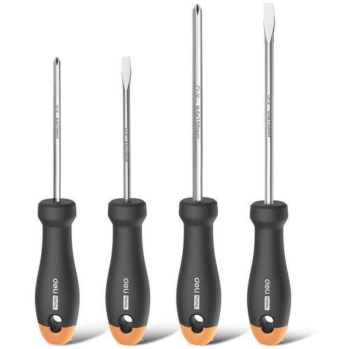 Отвертка Deli Набор отверток "Home Series Gray" Deli HT1004C 4шт SL5x100+SL6x150+PH1x100+PH2x150, эксклюзивный дизайн, рукоятка из высококачественного софттач пластика