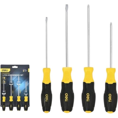 Набор отверток Deli DL630004N 4шт SL5x100 + SL6x150 + PH1x100 + PH2x150 сталь Cr-V, двухкомпонентная прорезиненная рукоять