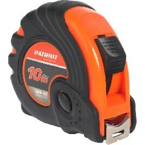 Рулетка PATRIOT MTP-10, ударопрочный корпус, обрезиненная, 10м. Прорезиненный эргономичный корпус выполнен из ударопрочного пластика. Широкая кнопка блокировки движения ленты для удобства и комфорта. Боковая кнопка фиксации ленты для дополнительного удобства и контроля.