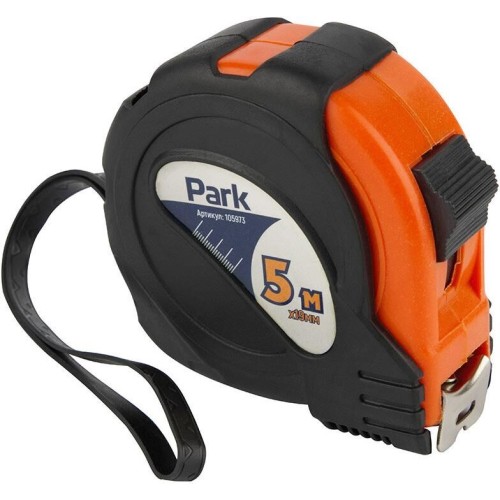 PARK Рулетка с фиксатором, прорезиненный корпус, 5мx19мм (105973)