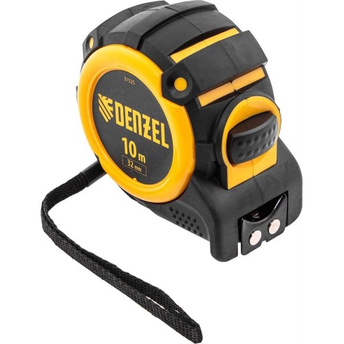 DENZEL Рулетка 10м х 32мм, автоматич. фиксац., нейлон. покрытие, магнит. зацеп, двухстор. разметка 31525