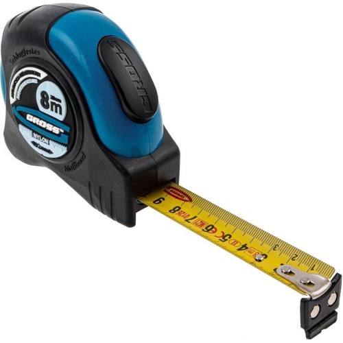 GROSS Рулетка "Schlagfest",8 м x 25 мм,магнитный обрезиненный зацеп,двусторонняя шкала,Нейлоновое покрытие,автоматическая фиксация 31114