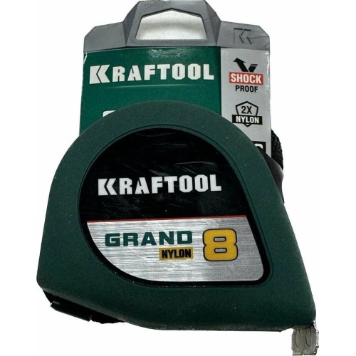 KRAFTOOL Рулетка строительная Grand дл.полотна 8м изм.шкала в см зацеп простой зеленый (34022-08-25)