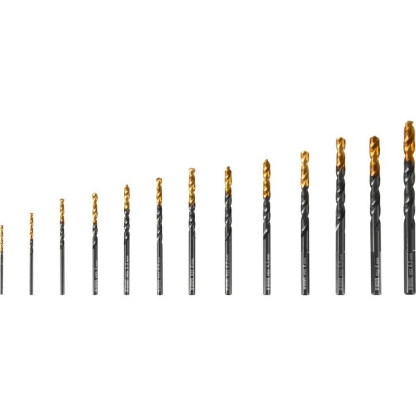 Набор Denzel Golden Tip 72318 включает 13 сверл по металлу для получения отверстий диаметром 1,5-6,5 в стальных заготовках. Оснастка вышлифована на высокоточном оборудовании и имеет класс точности A1, что позволяет эффективно решать поставленные задачи. Сверла упакованы в пластиковый кейс, с помощью которого можно измерить их диаметр: в крышке предусмотрен специальный шаблон.Преимущества Прочность сверла из быстрорежущей стали устойчивы к перегреву и выдерживают высокие нагрузки. Долговечность оснастки изготовлены с применением технологии азотирования и имеют нитридтитановое покрытие, что обеспечивает устойчивость к истиранию и образованию коррозии. Высокая скорость сверления сверла обладают пониженным коэффициентом трения и обеспечивают эффективный отвод стружки.