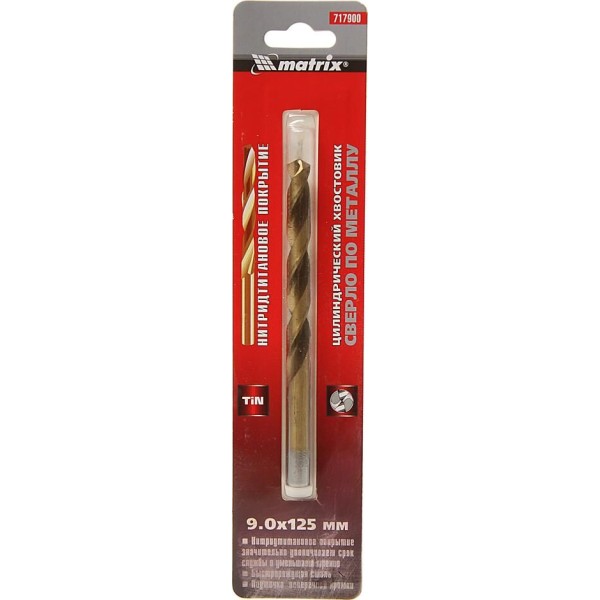 Сверло MATRIX Сверло по металлу, 9 мм, HSS, нитридтитановое покрытие, цилиндрический хвостовик