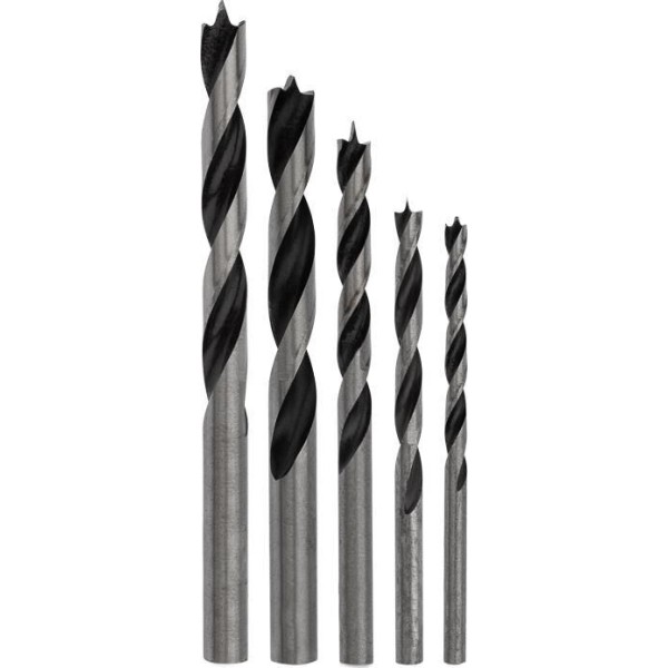 Набор сверл по дереву популярных диаметров предназначен для сверления отверстий различных диаметров в мягких и твердых породах древесины, ДВП, ДСП, фанере. Набор подходит как для бытового, так и для профессионального применения, будет полезен в строительстве, при выполнении ремонтных и столярных работ. Каждое сверло изготовлено из инструментальной стали, что способствует износостойкости инструмента. На конце рабочей части находится центрирующее острие, которое препятствует отклонению сверла от заданной оси и позволяет удобно засверливаться в материал. Цилиндрический хвостовик, совместимый со стандартным патроном дрели, надежно фиксирует оснастку во время работы инструмента. Набор состоит из сверл диаметром 4-5-6-8-10 мм (5 шт.).