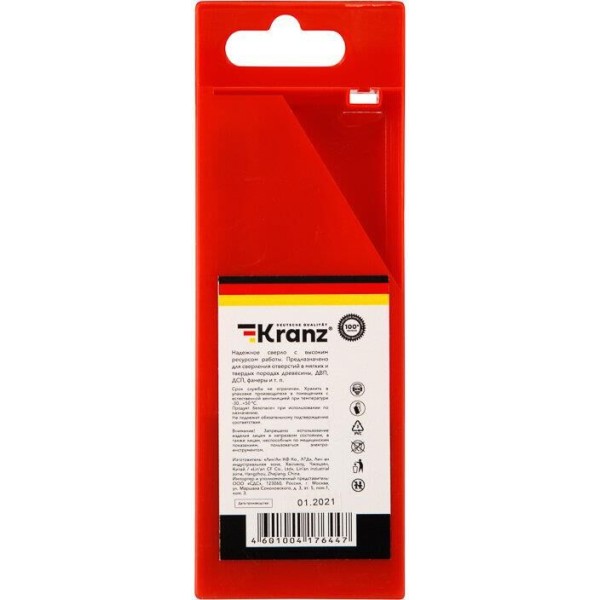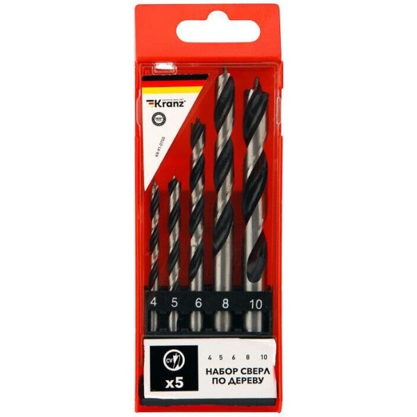 Сверло KRANZ (KR-91-0750) Набор сверл по дереву 4-10 мм, 5 шт.