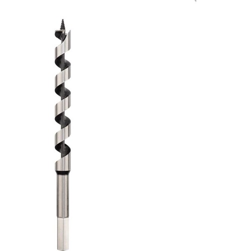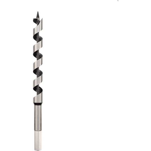 Винтовое сверло предназначено для сверления отверстий под нагели, дюбели. Используется при выполнении строительных, ремонтных и столярных работ. Сверло выполнено из закаленной инструментальной стали, что повышает износостойкость и долговечность инструмента. Центрирующее острие на конце рабочей части позволяет удобно засверливаться в материал и уменьшает осевую нагрузку, шнековая спираль Левиса обработана до зеркального блеска, из-за чего отверстия получаются гладкими, а стружка отводится более эффективно. Хвостовая часть, выполненная в виде шестигранника, надежно фиксирует сверло в патроне инструмента. Устанавливается на дрель или шуруповерт с высоким крутящим моментом.
