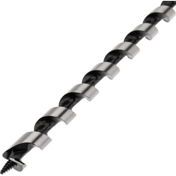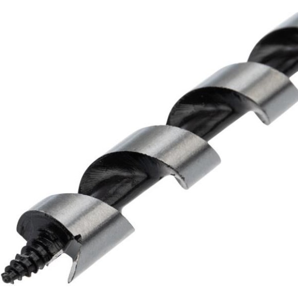 Винтовое сверло предназначено для сверления отверстий под нагели, дюбели. Используется при выполнении строительных, ремонтных и столярных работ. Сверло выполнено из закаленной инструментальной стали, что повышает износостойкость и долговечность инструмента. Центрирующее острие на конце рабочей части позволяет удобно засверливаться в материал и уменьшает осевую нагрузку, шнековая спираль Левиса обработана до зеркального блеска, из-за чего отверстия получаются гладкими, а стружка отводится более эффективно. Хвостовая часть, выполненная в виде шестигранника, надежно фиксирует сверло в патроне инструмента. Устанавливается на дрель или шуруповерт с высоким крутящим моментом.