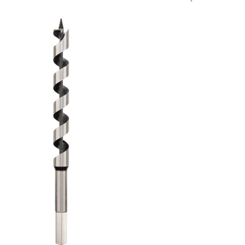 Винтовое сверло предназначено для сверления отверстий под нагели, дюбели. Используется при выполнении строительных, ремонтных и столярных работ. Сверло выполнено из закаленной инструментальной стали, что повышает износостойкость и долговечность инструмента. Центрирующее острие на конце рабочей части позволяет удобно засверливаться в материал и уменьшает осевую нагрузку, шнековая спираль Левиса обработана до зеркального блеска, из-за чего отверстия получаются гладкими, а стружка отводится более эффективно. Хвостовая часть, выполненная в виде шестигранника, надежно фиксирует сверло в патроне инструмента. Устанавливается на дрель или шуруповерт с высоким крутящим моментом.