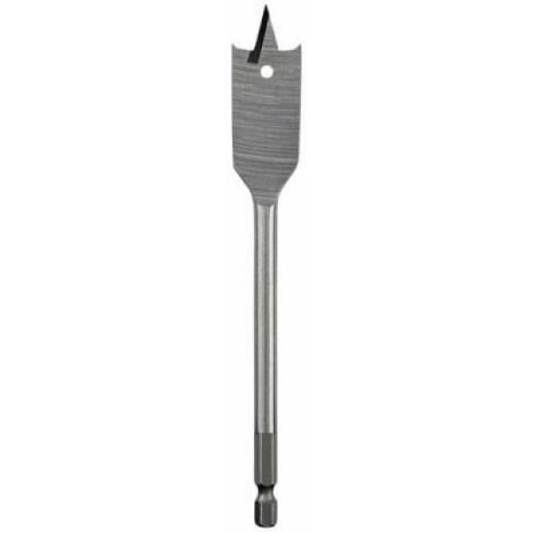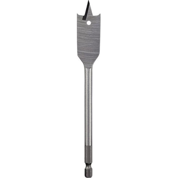 Перовое сверло предназначено для сверления отверстий в древесине мягких и твердых пород, ДВП, ДСП, фанере. Сверло выполнено из закаленной инструментальной стали, которая повышает износостойкость и долговечность инструмента. Состоит из рабочей части и шестигранного хвостовика. В центре рабочей части находится выступ, благодаря которому можно зафиксировать инструмент во время засверливания. С двух сторон от центрального выступа размещены режущие лезвия. Благодаря подрезателям на режущих кромках рабочей части в отверстиях получаются ровные края. Хвостовая часть, выполненная в виде шестигранника, надежно фиксирует сверло в патроне инструмента. Устанавливается на дрель или шуруповерт с высоким крутящим моментом.