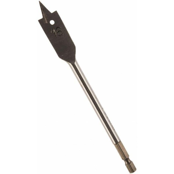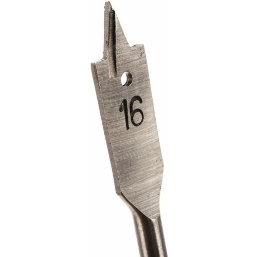 Перовое сверло предназначено для сверления отверстий в древесине мягких и твердых пород, ДВП, ДСП, фанере. Сверло выполнено из закаленной инструментальной стали, которая повышает износостойкость и долговечность инструмента. Состоит из рабочей части и шестигранного хвостовика. В центре рабочей части находится выступ, благодаря которому можно зафиксировать инструмент во время засверливания. С двух сторон от центрального выступа размещены режущие лезвия. Благодаря подрезателям на режущих кромках рабочей части в отверстиях получаются ровные края. Хвостовая часть, выполненная в виде шестигранника, надежно фиксирует сверло в патроне инструмента. Устанавливается на дрель или шуруповерт с высоким крутящим моментом.