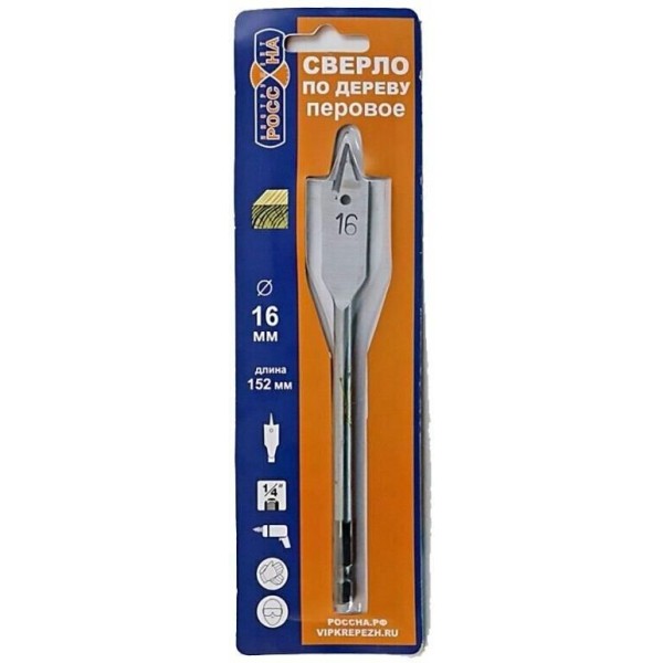 Сверло KRANZ (KR-91-0665) Сверло перовое по дереву 16х152 мм (шестигранный хвостовик)