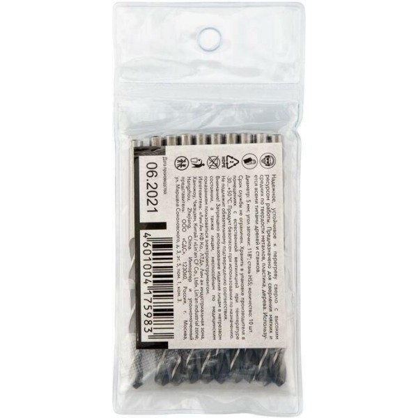 Сверло KRANZ (KR-91-0618) Сверло по металлу 5,0х86х52мм (HSS), DIN 338, 10 шт. в упаковке