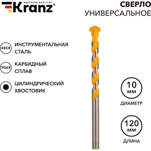Сверло KRANZ (KR-91-0323) Сверло универсальное твердосплавное, 10мм