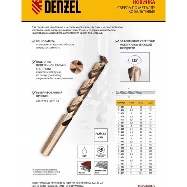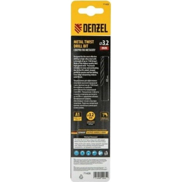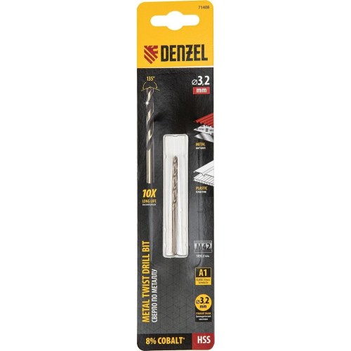 DENZEL Сверло по металлу, 3,2 мм, HSS Co-8% // 71408